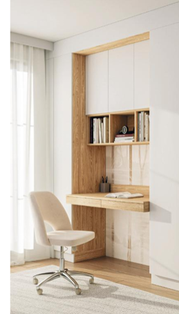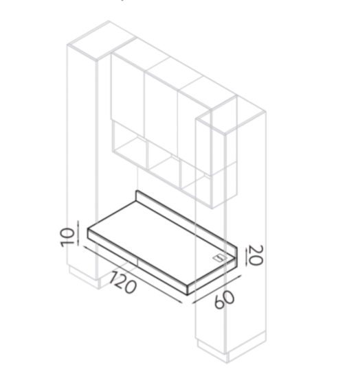 Biurko z kolekcji New Elegance, świetnie komponuje się z innymi elementami systemu Sleep Varia. Biurko należy montować między dwoma szafami lub między szafą a bokiem technicznym przy ścianie.