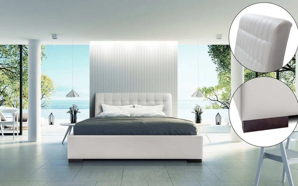 Łóżko Croatia z kolekcji łóżek tapicerowanych Italcomfort. Delikatna ramka zamykająca regularne, wypukłe kwadratowe przeszycia wprowadza do sypialni spokój, wyciszenie i poczucie elegancji.