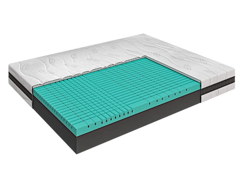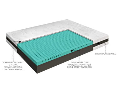 POKROWIEC Lyocell: pikowany pokrowiec wykonany z tkaniny Lyocell i dodatkowej warstwy włókien Air Flou zapewnia większy komfort snu. Po bokach został wszyty szary pas oddychającej siatki w celu poprawy wentylacji materaca. Pokrowiec posiada wszyty zamek umożliwiający podział pokrowca do prania na dwie części.